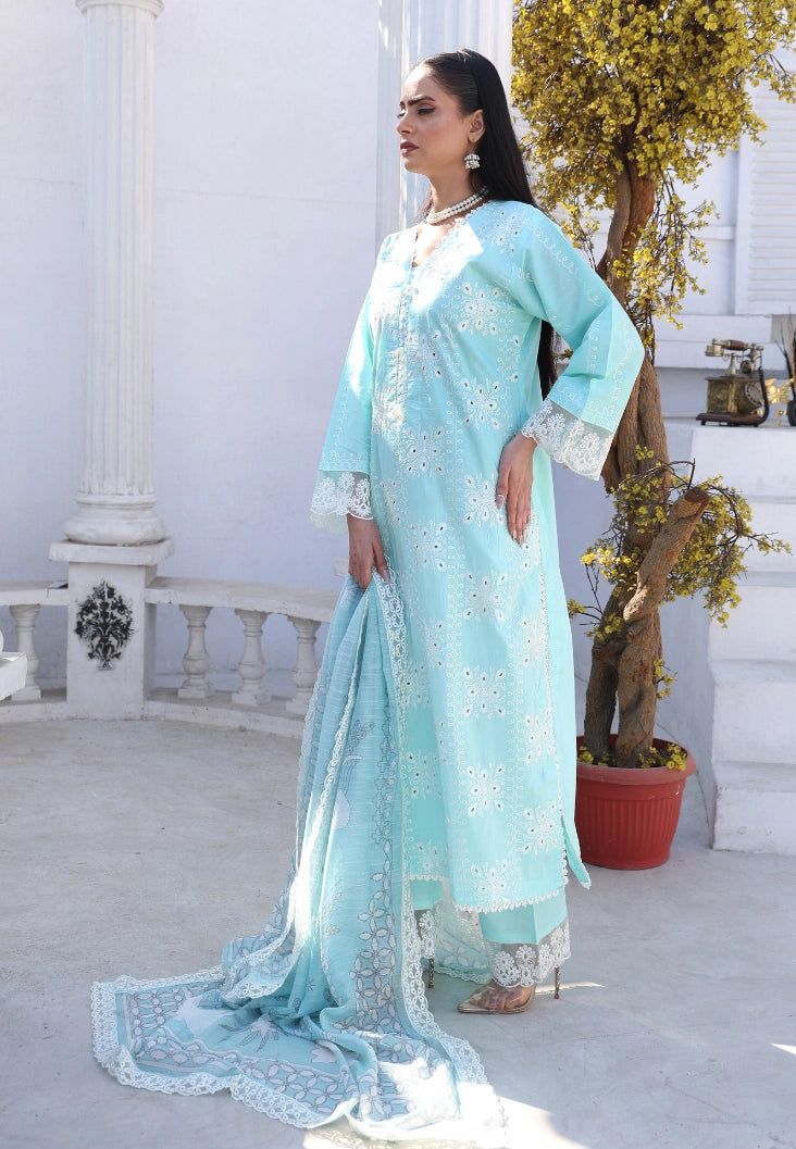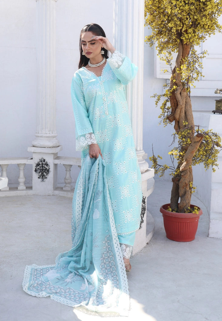 Step into effortless summer elegance with this Aqua Blue Luxury Cotton Embroidered Suit, designed for comfort, grace, and timeless style. Crafted from premium breathable summer cotton, this outfit is ideal for warm weather while delivering a rich, festive look.