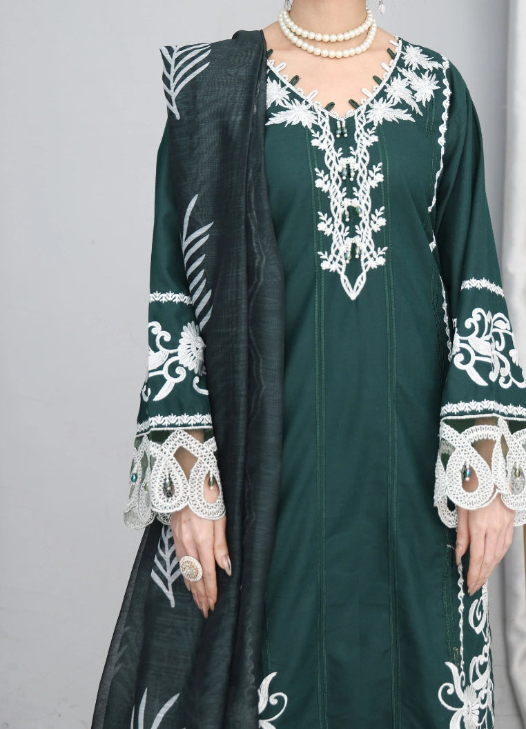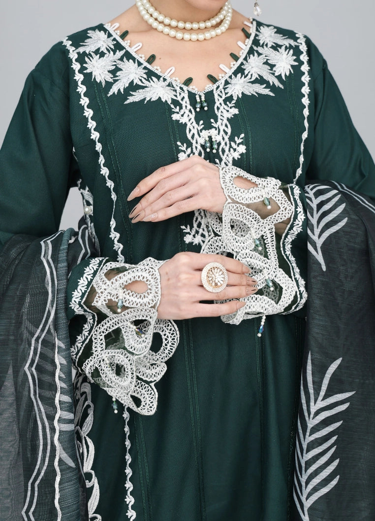 Bottle Green Embroidered 3 Piece Suit – Luxury Ready to Wear Pakistani Outfit