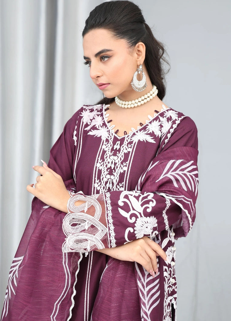 Designed for women who love rich hues with classic embroidery, this stitched suit is an excellent choice for winter weddings, Eid celebrations, formal gatherings, and festive occasions.