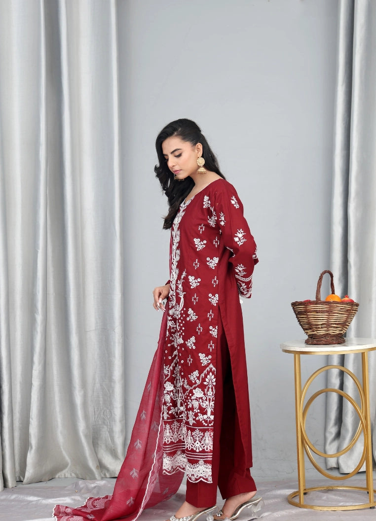 Mehroon Embroidered Winter Cotton 3 Piece Suit – Luxury Ready to Wear Pakistani Outfit