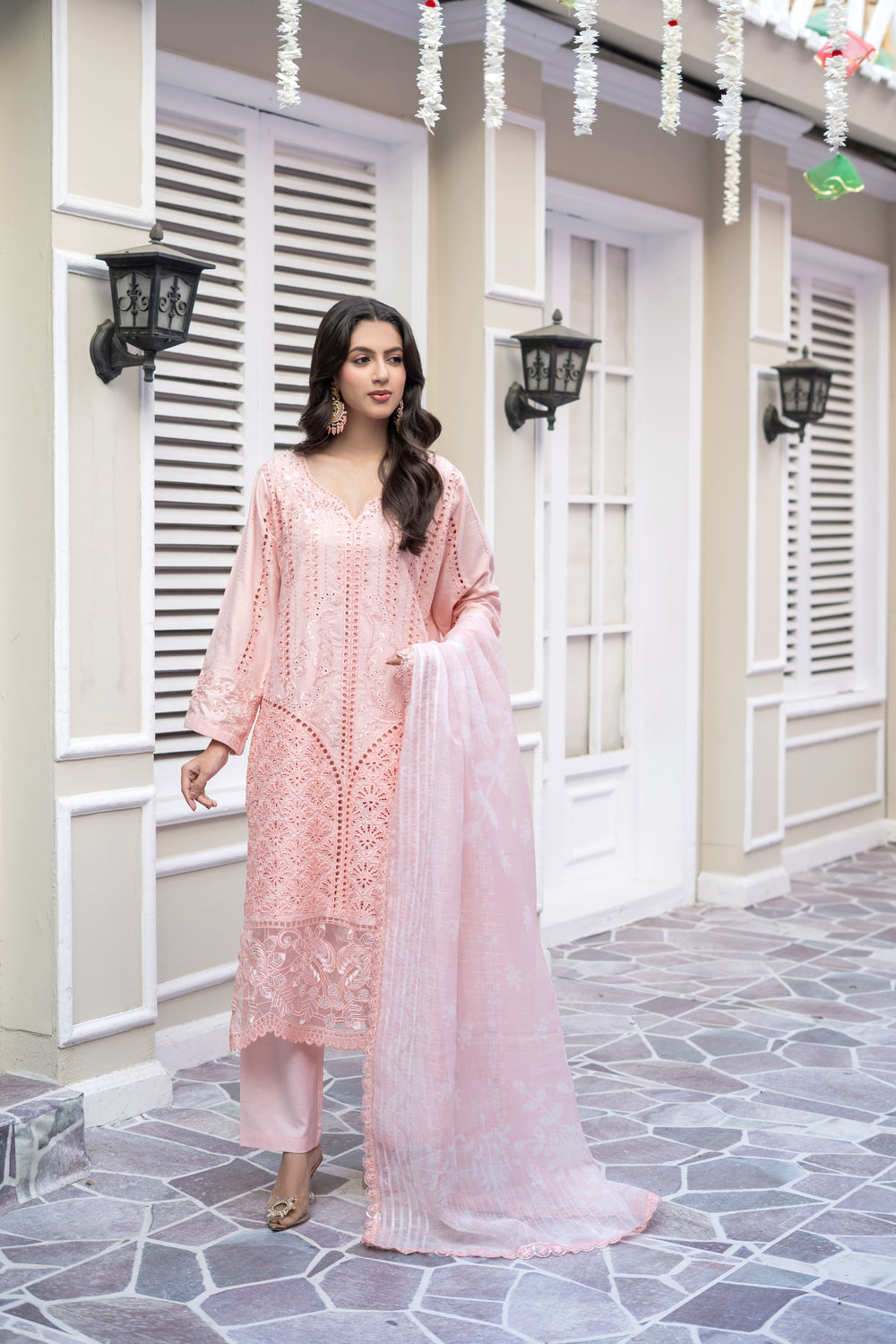 Luxury Blush Pink Embroidered Winter Cotton 3 Piece Suit – Ready to Wear Pakistani Casual & Semi-Formal Outfit