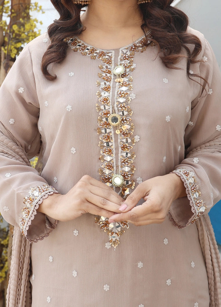 This chiffon suit is created with attention to fine details. The fabric is lightweight, breathable, and flows beautifully, ensuring comfort throughout the day or night.