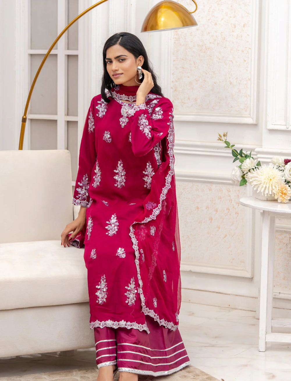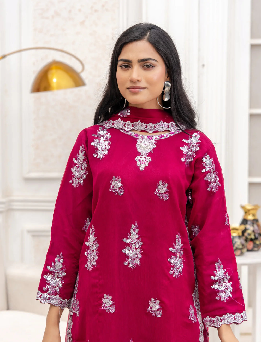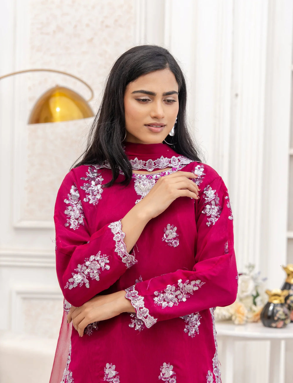 Luxury Shocking Pink Chiffon Embroidered 3 Piece Suit – Ready to Wear Pakistani Festive & Wedding Outfit