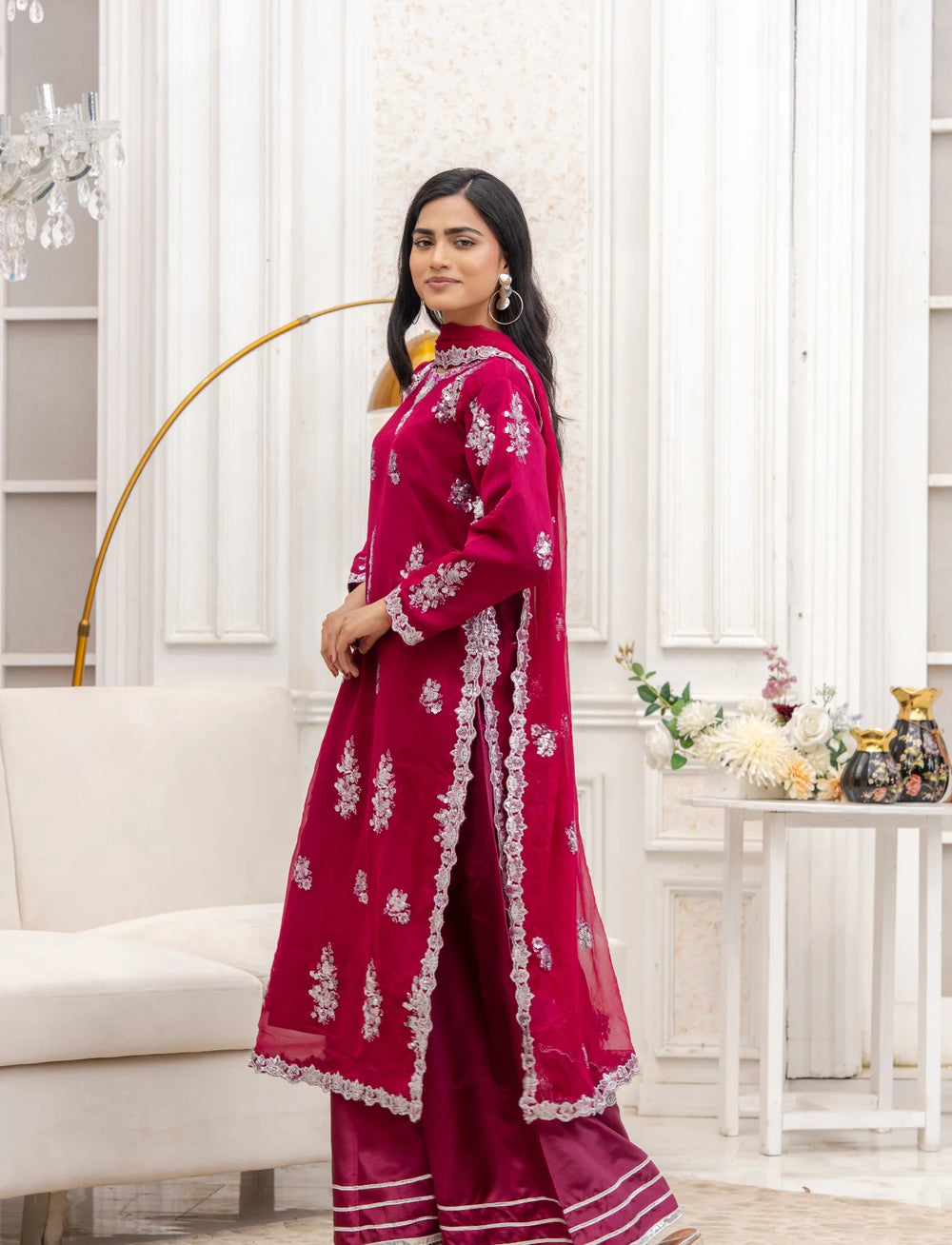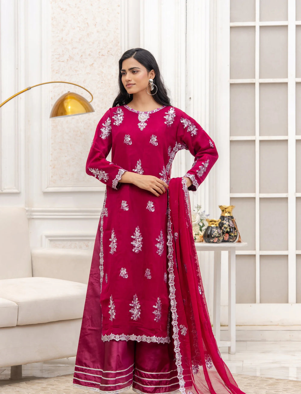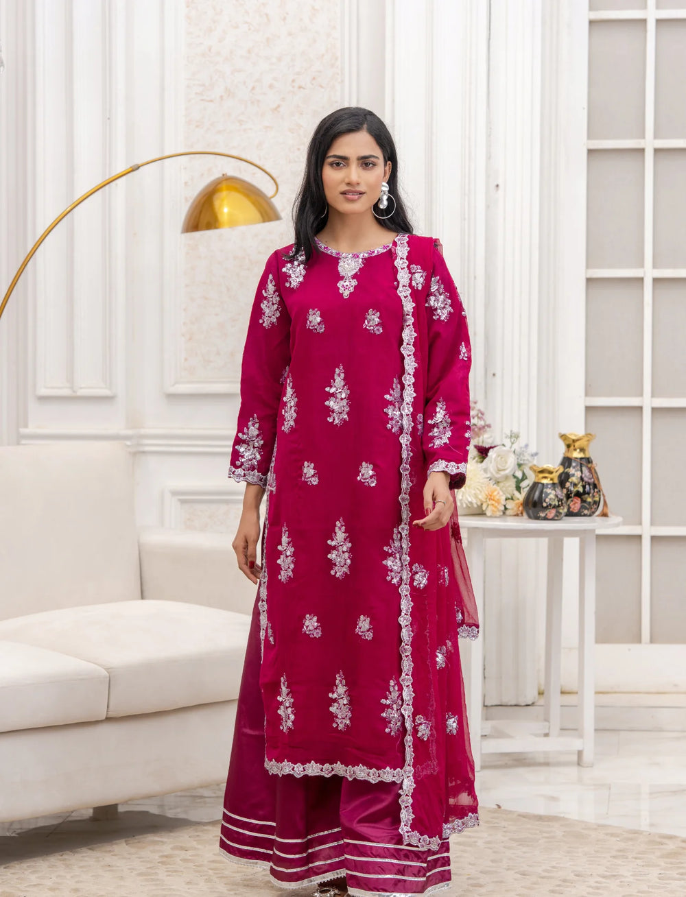 Luxury Shocking Pink Chiffon Embroidered 3 Piece Suit – Ready to Wear Pakistani Festive & Wedding Outfit